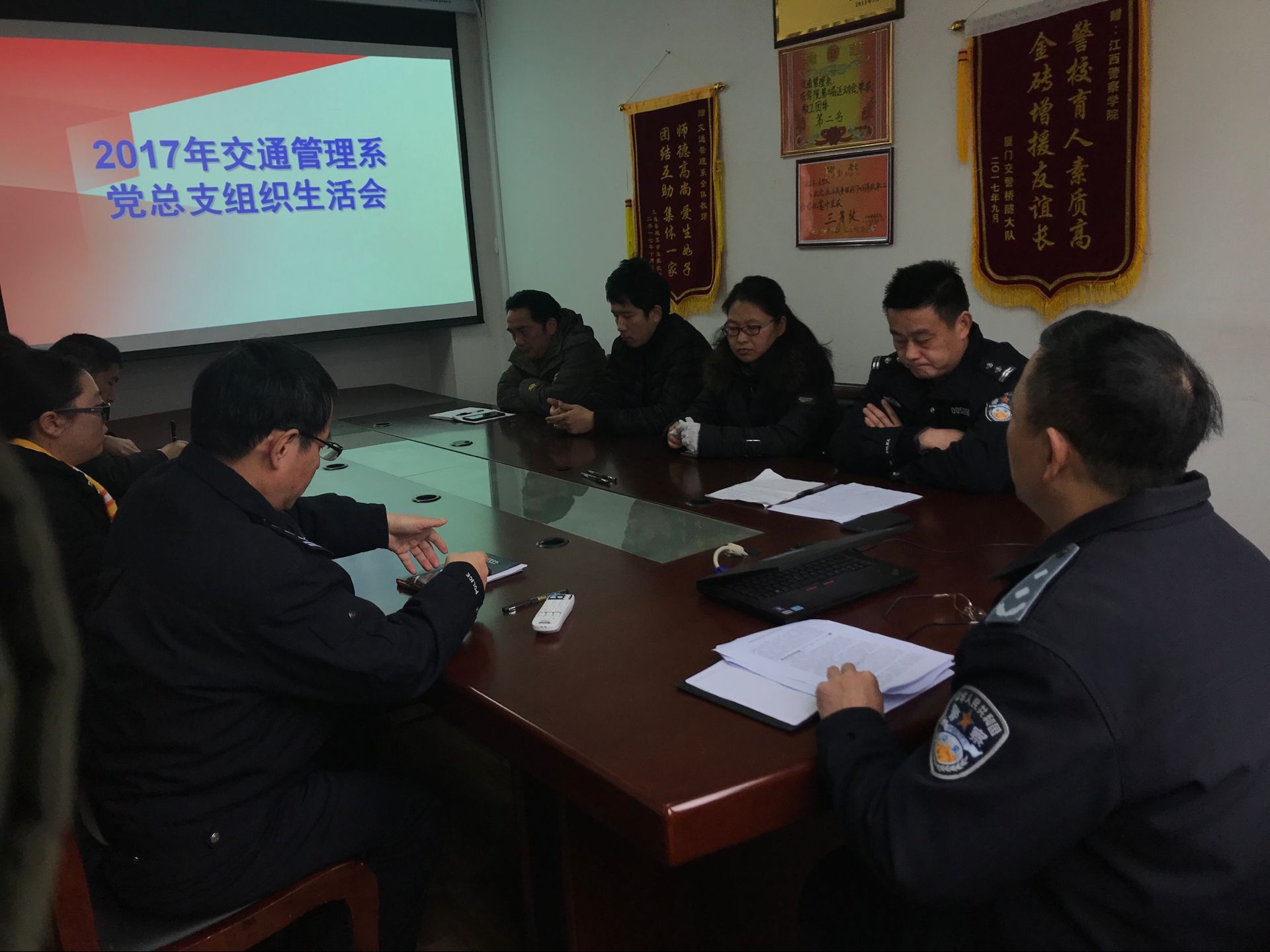 根据学院《关于认真开好组织生活会暨征求院党委及班子成员意见的通知》要求,2018年元月22日上午,交通管理系党总支部在系部楼201会议室召开2017年度组织生活会。会议由交管系党总支部书记毛瑞明主持,全体师生党员参加。