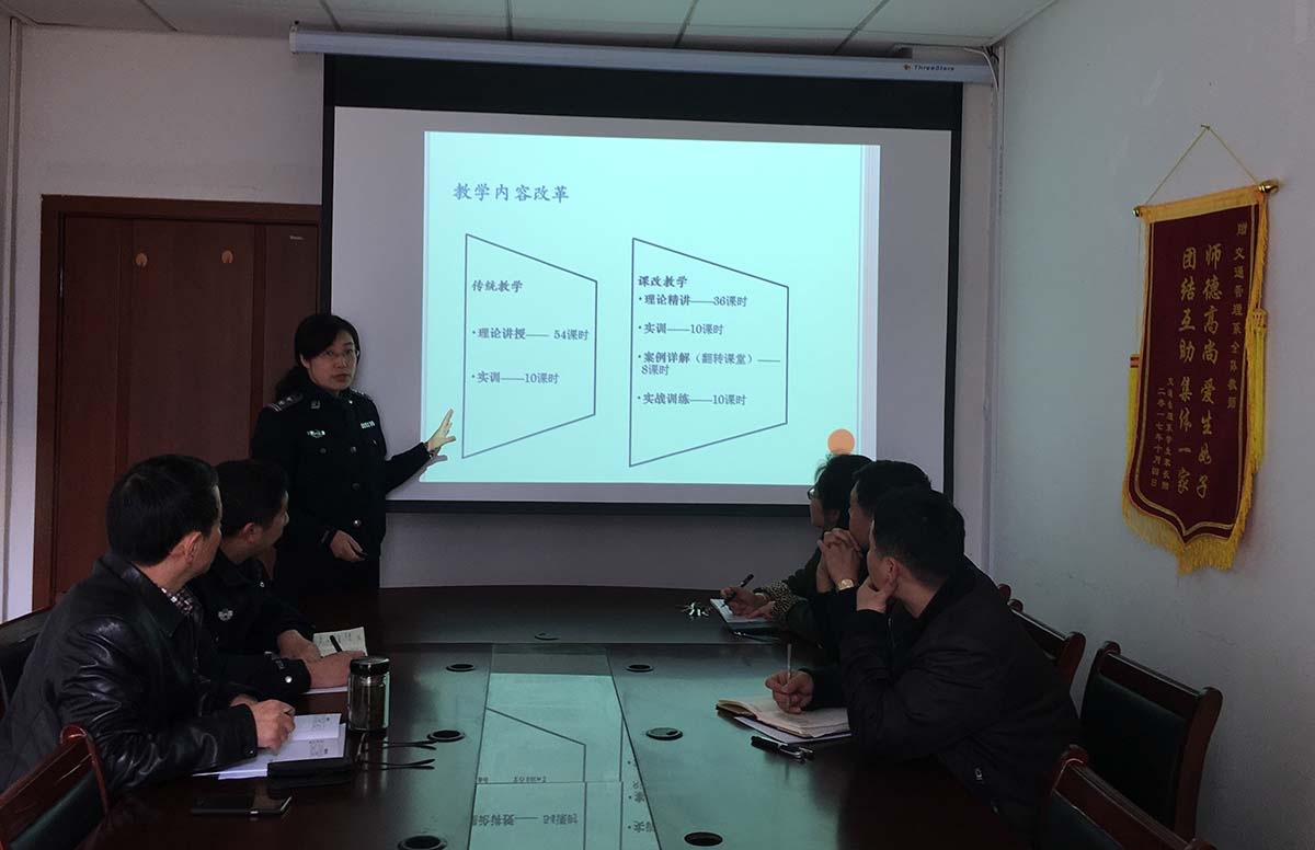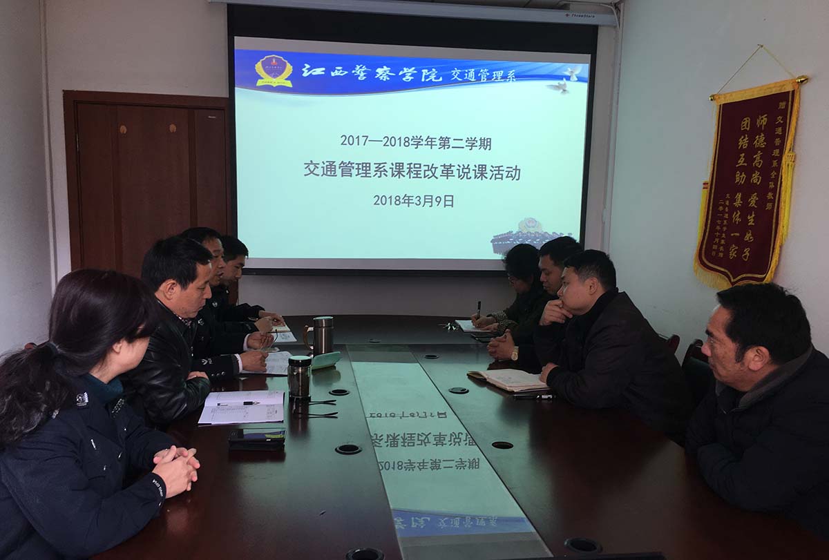 为扎实做好教育部本科教学工作合格评估后的整改工作,切实规范、加强课程建设,深化专业教学改革,根据《江西警察学院课程教学改革实施办法(试行)》要求,3月9日上午,交通管理系在系部楼201会议室举行新学期课程教学改革说课活动。担任2017-2018学年第二学期课改教学任务的3名任课教师进行了说课。交通管理系全体专兼职教师参加了说课活动。说课活动由陶学榆副主任主持。