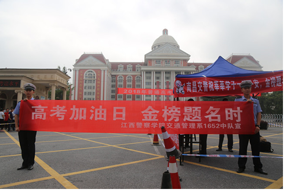 应新建区交警大队的邀请,我院安排交管系青年志愿者为高考考生保驾护航。并于6月7日开始上午交通管理系1652中队志愿服务小队来到新建二中高考考点开展爱心助考公益执勤活动。
